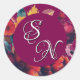 Plum Wildflowers Bouquet Monograma Pegatina de Ini
