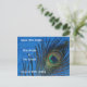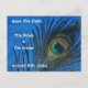 Esta pluma de pavo real tiene un hermoso color oscuro y una gran manera de hacer saber a la gente que debe guardar la fecha para su boda. El fondo azul resalta los colores de los ojos de plumas de pavo real. Increíblemente ahorre las postales de fecha.