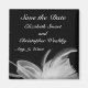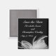 Las plumas son la nueva tendencia en el diseño boda. En esta opción Guardar la fecha se incorporan de una manera suave, astuta y delicada. Esta opción Guardar el imán de fecha forma parte de la línea boda de plumas blancas. También está disponible como tarjeta.