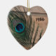 Bonito ornamento navideño de la pluma de pavo real con un año de personalizable. El ladrillo de arenisca parece absolutamente vibrante y sorprendente con la pluma de pavo real. Si estás decorando con un tema de Navidades pavos reales este año o necesitas una idea de regalo de pavo real, esto es hermoso. Personalizar esto por un regalo de boda para que la pareja pueda tener un recuerdo que colgar cada año.