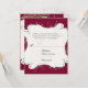 Esta obra de arte de época ha sido diseñada para una colección de bodas moderna y contemporánea. El conjunto completo de productos se puede crear en varios colores. Si desea que coincida con su boda, háganoslo saber por correo electrónico y estaremos encantados de asistirle. Este diseño consiste en un borde giratorio pintado a mano con un par de plumas de pavo real de arte original. El color de fondo se cambia fácilmente para que coincida con el de su boda y puede ser diferente en cada lado si lo desea. En el reverso está el mismo marco giratorio y el texto de su boda. RECOMENDACIONES PARA LA SELECCIÓN DE PAPEL: Además del papel estándar ofrecido, sería exquisito con los Papeles metálicos de champán o hielo, plata o metal dorado o cualquiera de los papeles premium. TAMBIÉN PODRÍAS DISFRUTAR: