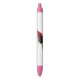 Pluma de fuente antigua de dibujos artísticos adornada con una pluma roja oscura sobre fondo blanco.