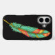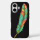 FUNDA IPhone 16 con pluma verde colorida y naranja.