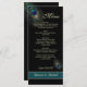 Plumas de pavo real azul verde en la carta de fondo negro de la bandeja de la bandeja. Puede ajustar el texto de acuerdo con sus requisitos.