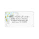 Flores plumerias etiquetas de dirección blanca con cuatro líneas de texto. Fondo blanco y flores blancas, tropicales frangipani con nombres en escritura y dirección en letra impresa. Este diseño también funciona para las etiquetas delgadas.