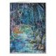 Caminando a través de un puente de madera en un bosque mojado, el lado oscuro del puente muestra una vista… de otro lugar, en donde puede haber mágico. Tarjeta.