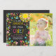 ¡De manera perfecta del ♥ A de invitar a sus huéspedes a su pequeño su fiesta de cumpleaños! Con un poco tema de la sol. Las flores y un sol en una pizarra ennegrecen el fondo.