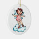 Ornamento de cerámica con un pequeño diseño del chica del ángel. El chica está llevando un vestido rosado y zapatos de ballet rosados. Ella se está colocando en una nube. Gran regalo del navidad.