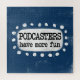 "Los podcasters tienen más diversión" es un lindo diseño de texto con una forma de acento blanco rodeado de puntos blancos y extravagantes.