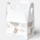 Celebra la próxima llegada de tu pequeño con nuestra caja Baby Shower Favor Box "We Can Bearly Wait" (Podemos esperar temprano). Un bonito diseño con un adorable oso marrón adornado con un bonito arco azul, con globos marrones y azules. Envuelto en un marco de ensueño de nubes onduladas y estrellas brillantes, esta caja de favores le agrega un toque caprichoso y reconfortante a su celebración. Perfecto para recibir pequeños regalos o dulces para dar las gracias a sus invitados con estilo. BBS388