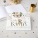 Celebra la próxima llegada de tu pequeño con nuestro "We Can Bearly Wait" Baby Shower Guest Book! Un bonito diseño con un adorable oso marrón adornado con un encantador arco verde, con globos marrones y verdes. La escena se sitúa en un marco de ensueño de nubes onduladas y estrellas brillantes, lo que convierte a este libro de invitados en un recuerdo caprichoso y reconfortante. Perfecto para captar mensajes dulces y recuerdos de tu día especial! BBS390