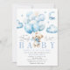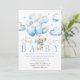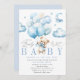 tema azul de bebé con encantadora escritura, podemos esperar con cuidado la plantilla de invitación a la ducha de bebé. El texto y los colores se pueden editar.