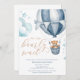 Esta adorable ducha de bebé está decorada con un oso de peluche color agua en un globo aerostático que flota en las nubes para decir que puedes esperar a que llegue tu pequeño.