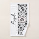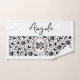 Gato estirador de yoga que muestra una posición poderosa con tu nombre personalizado y nombre inicial. Yoga, gato, fitness, ropa blanca y negra.