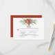 Elegante y clásico RSVP de boda de Navidad con una poinsettia roja con guirnalda de delicados verdes y ramitas. La parte trasera de la tarjeta es de un rojo intenso y profundo. Personalice con su propia información. Agregue sus opciones de comida o elimínelas si lo desea. *** NOTA *** Si necesita ayuda con esta invitación o tiene solicitudes personalizadas con las que necesito ayudarle, no coloque este producto en su carrito. En su lugar, envíeme un correo electrónico con su solicitud a shutterbug600@yahoo.com. Todo el envío e impresión es manejado por Zazzle y las preguntas relacionadas con su pedido deben dirigirse al soporte de Zazzle: https://www.zazzle.com/about/ask. No tengo acceso a su cuenta y no puedo hacer cambios una vez que haya realizado su pedido. Además, el CHAT no está en vivo, pero normalmente respondo en un plazo de