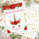 Poinsettia Unicorn con tarjeta de Navidades rojos