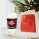 Vidrio para bebidas frías que incluye una foto de Poinsettias rojas y una orquídea de Dama de Carne blanca, también conocida como orquídea Venus. Un bonito diseño floral para las vacaciones.