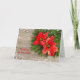 Esta rama de árbol de navidad hermosa de las características del diseño con el poinsettia rojo en fondo de madera. El texto alemán en frente dice: Felices Navidad. Interior en alemán también: Felices Navidad y una Feliz Año Nuevo. Foto usada en este diseño autorizado con www.colourbox.com. Ilustraciones originales por LiliGraphie