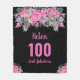 Elegante diseño para una fiesta de cumpleaños número 100 con un rosa negro "100 y fabuloso" y un nombre escrito adornado con flores de acuarela femeninas sobre un fondo blanco. edad, texto, nombre y color de fondo del personalizar.