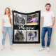 Manta personalizada para su perro. Personalizable con 4 puntos para sus imágenes de la foto del perro o del gato con su nombre del perro o del gato. Todo es adaptable. Usted puede cambiar el color de fondo blanco y negro de las fronteras, cambiar el estilo de fuente y clasificarlo y colorearlo.