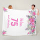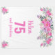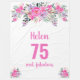 Elegante diseño para una fiesta de cumpleaños número 75 con un rosa "75 y fabuloso" y un nombre guionado adornado con flores de acuarela femeninas sobre un fondo blanco. edad, texto, nombre y color de fondo del personalizar.