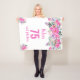 Elegante diseño para una fiesta de cumpleaños número 75 con un rosa "75 y fabuloso" y un nombre guionado adornado con flores de acuarela femeninas sobre un fondo blanco. edad, texto, nombre y color de fondo del personalizar.
