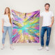 Esta manta de lana es una foto de mirar por los árboles en el cielo que ha sido alterada de una manera divertida y colorida. Manténgase cálido con esta manta de color morado, amarillo, turquesa y blanco.