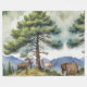 Bosque de animales en las montañas Fleece Blanket con imágenes acuáticas de oso, alce y ciervo y un pino.