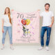Una elegante manta de cumpleaños feliz. Incluye gafas de champán y globos y confetti todo sobre un fondo rosa pálido con texto de color plata. Perfecto como un regalo para celebrar un cumpleaños número 70, algo que puedan apreciar y con lo que puedan acurrucarse. sería un regalo ideal para un amigo o familiar como una abuela, abuela, nana, nana, nan. Puede ser personalizar modificando los títulos y la edad que luego personaliza añadiendo el nombre un mensaje corto y la fecha de nacimiento o la fecha de cumpleaños 70 para hacer de esto un regalo verdaderamente único y personal.El color de fondo puede ser cambiado si es necesario, sólo haga clic en el botón personalizar más.