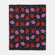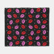 Una manta agradable y acogedora con huellas de besos en rojo y rosa con corazones pequeños y dispersos, diseño de estilo confetti con fondo negro!