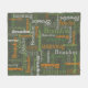 Texto de nombre tipográfico en un diseño de manta personalizado de tonos gris-verde, gris, naranja y verde del bosque. El color de fondo se puede cambiar si es necesario. Divertido texto gráfico personalizado manta personalizada. Ideal para acampar, para el coche o para las noches de invierno o excursiones. Personaliza tu propio nombre corto, actualmente lee Brandon para obtener ayuda con la personalización y otras longitudes de nombres por favor contáctame. © Arte y diseño de Sarah Trett para www.mylittleeden.com