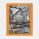 Las gotas de lluvia saltan la superficie del estanque una mañana de otoño, rompiendo el reflejo de los árboles. Las hojas amarillas de otoño flotan en la superficie.