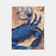 La imagen de cangrejo y vieira fue creada con pintura acrílica en un panel de madera.
