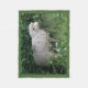 Esta fabulosa manta de lana muestra una fotografía de una bonita oveja esponjosa. La oveja está rodeada de flores silvestres y de hierba larga y se come codiosamente algunas hojas. Tiene un grueso abrigo blanco de lana y una nariz negra linda.