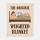 Las mantas pesadas pueden utilizarse para consolarse y reducir la ansiedad, lo que puede mejorar la calidad del sueño. Recientemente, las mantas ponderadas han llegado a estar ampliamente disponibles para los consumidores. Pero los dueños de gatos han estado experimentando los beneficios de reducir el estrés de dormir bajo peso durante años. Los gatos tienen la ventaja adicional de proporcionar ruido blanco y vibración de luz a través de purga, más calor corporal, y amor. Este divertido diseño gráfico personalizado representa a una persona durmiendo en una cama, mientras que dos gatos se zambullen en la parte superior. La linda imagen del amor gatito está subtitulada con texto en negrita que dice EL BLANCO PESO ORIGINAL.