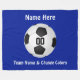 Azul y manta personalizada blanco del fútbol/fútbol o fondo y texto del CAMBIO a sus COLORES. 3 TAMAÑOS de las mantas del fútbol: Pequeño, medio y grande (como se muestra). Mecanografíe adentro a jugadores de fútbol el nombre, nombre del número del jersey o del monograma y del equipo o SU TEXTO o cancelación. Vea abajo, * * * tiempo - la extremidad del ahorro para los jugadores y los coches MÚLTIPLES personalizó UNA manta del paño grueso y suave del fútbol a la vez. Diseñador Linda de la LLAMADA: 239-949-9090 para la AYUDA y los CAMBIOS del diseño o del producto: 239-949-9090