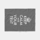 El gris de encargo guarda calma y su manta del paño grueso y suave del texto. Cree su propio divertido guardan calma y continúan la parodia. Plantilla de la tipografía del keepcalm del vintage con la corona. Gris de encargo y blanco del IE del color de fondo. Ejemplos lindos de la parodia del keepcalmandcarryon: Guarde la calma y cuide encendido. Guarde la calma y sonría encendido. Guarde la calma y snuggle para arriba. Disponible en pequeño medio y grande. Conveniente para las mujeres y los niños de los hombres.
