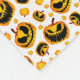Espeluznante y asustado Naranja Halloween Calabaza Blanca Media Blancancha. Sonrisa malvada de calabaza. Tema de temporada de vacaciones.