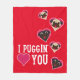 I amor de Puggin usted rojo de la manta del paño grueso y suave de la tarjeta del día de San Valentín