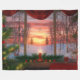 "Para dar a conocer la salvación a su pueblo por medio de la remisión de sus pecados, por medio de la misericordia tierna de nuestro Dios; por medio de la cual nos visitó el día de arriba a abajo, para iluminar a los que se sientan en tinieblas y en la sombra de la muerte, para guiar nuestros pies en el camino de la paz." Lucas 1:77-79 Sentado cerca del árbol de Navidad mirando por la ventana en un paisaje nevado viendo el amanecer en la mañana de los Navidades.