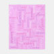 Los chicas tipográficos nombran texto rosa, morado y blanco sobre una manta personalizado de fondo rosa morado claro. El color de fondo se puede cambiar si es necesario. Divertido texto gráfico personalizado manta personalizada. Ideal para el coche, acampando para las noches de invierno o excursiones. Personaliza tu propio nombre corto, actualmente lee Lauren para ayuda con personalización y otras longitudes de nombres por favor contáctame. © Arte y diseño de Sarah Trett para www.mylittleeden.com