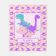 Una preciosa manta de pulpa de diseño de dinosaurios adorable para niños que cuenta con un dinosaurio T-Rex azul personalizado, un bronce morado y triceratops rosados, situado en un fondo de dinosaurio rosa y morado. Un bonito diseño para las niñas que aman los dinosaurios. Genial como regalo para tu hija, nieta, nieta o gran sobrina. Se puede personalizar modificando el nombre para hacer de esto una manta especial de lana para esa niña especial.