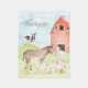 Manta de bebé de animales de granja con adorables animales de acuarela y granero en un cielo de acuarela y fondo de hierba. Esta manta de bebé de animales de granja se personaliza fácilmente con el texto de su elección.