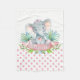Manta bebé elefante niña con adorable elefante bebé niña que lleva un lazo rosa lindo en una hoja de palma y fondo de puntos rosados. Esta dulce manta bebé elefante se personaliza fácilmente con el texto de su elección.