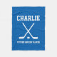 Manta conocida personalizada del paño grueso y suave del jugador del hockey sobre hielo. Jugador de hockey futuro. Fondo de encargo del color con el logotipo del duende malicioso y de los palillos más su nombre, apellido, nombre del equipo o cita divertida. Guay se divierte la idea del regalo para el jugador de básquet, coche, fan. Haga uno para el recién nacido, el sobrino, el hijo, el nieto, la hija, la nieta etc. conveniente para los muchachos o los chicas.
