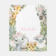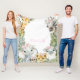 Manta de bebé safari niña con adorables animales de safari y flores rosadas en un fondo de color a elección. Esta manta de bebé safari se puede personalizar con el texto que desees.