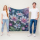 Un diseño floral en tonos de rosa, azul, verde y marfil cubre esta hermosa manta de peluche.