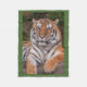 Deje este tigre dramático que el retrato calienta a sus guapas en esta manta preciosa del paño grueso y suave. La imagen preciosa de una reclinación feroz del tigre presentó en un fondo verde.