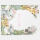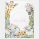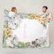 Manta de safari de bebé con adorables animales de safari y flores rosadas en un fondo de color a elección. Esta manta de safari para bebé se puede personalizar con el texto que desees.