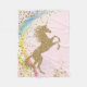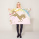 Manta de unicornio con hermoso unicornio dorado en un fondo de arcoíris pastel rosa. Esta bonita manta de unicornio se personaliza fácilmente simplemente agregando el texto de su elección en el estilo de fuente que prefiera. También puede cambiar el color de fondo en esta adorable manta de unicornio. Este es un diseño impreso sin purpurina real, papel de aluminio, etc.